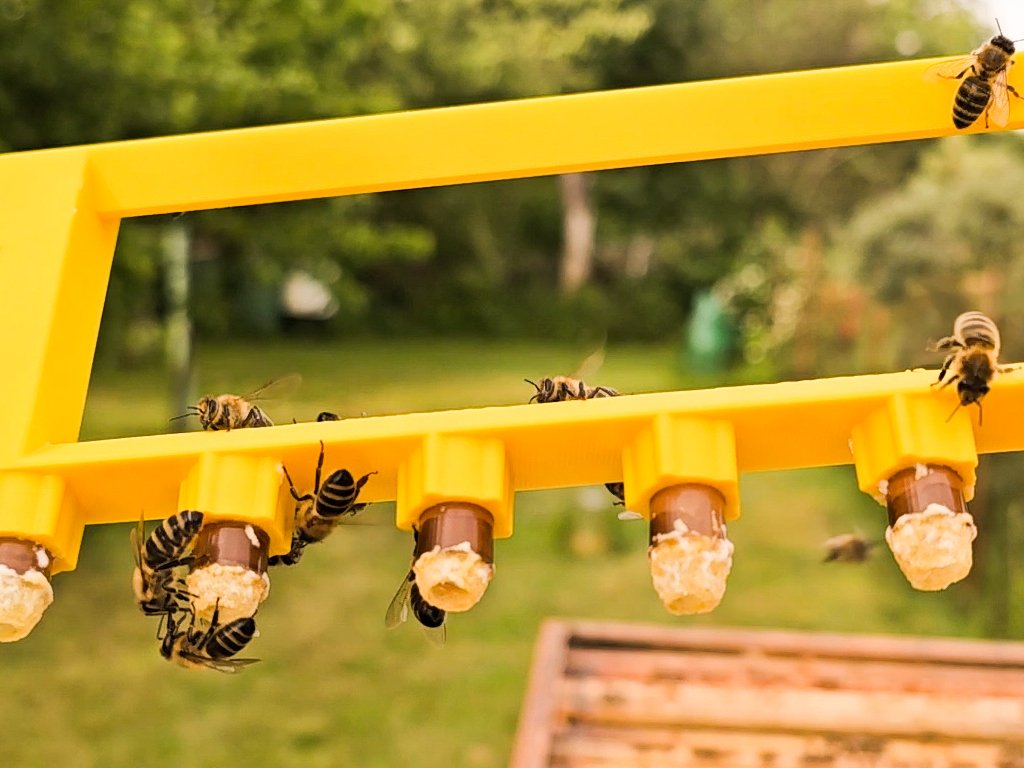 Tento rámek je speciálně uzpůsobený pro chov včelích matek a je vyroben tak, aby včelstvu simuloval matečníky z tiché výměny a Vy mohli díky tomu získávat pouze ty nejkvalitnější včelí matky.