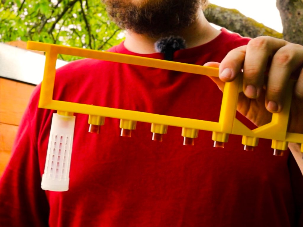 Díky mezeře v horní části rámku je eliminován problém se zastavěním matečníků divočinou, když chov provádíme v extrémních snůškových podmínkách a dokonale navržené držáčky na mateří misky nám velmi ulehčí život. Již nikdy nebudeme muset lepit žádné držáčky na loučku a peklovat se s vypadávajícíma mističkama a nedržící školkovací klíckou! Díky tomuto nám půjde chov matek hezky od ruky a budeme dosahovat vždy pouze těch nejlepších výsledků.